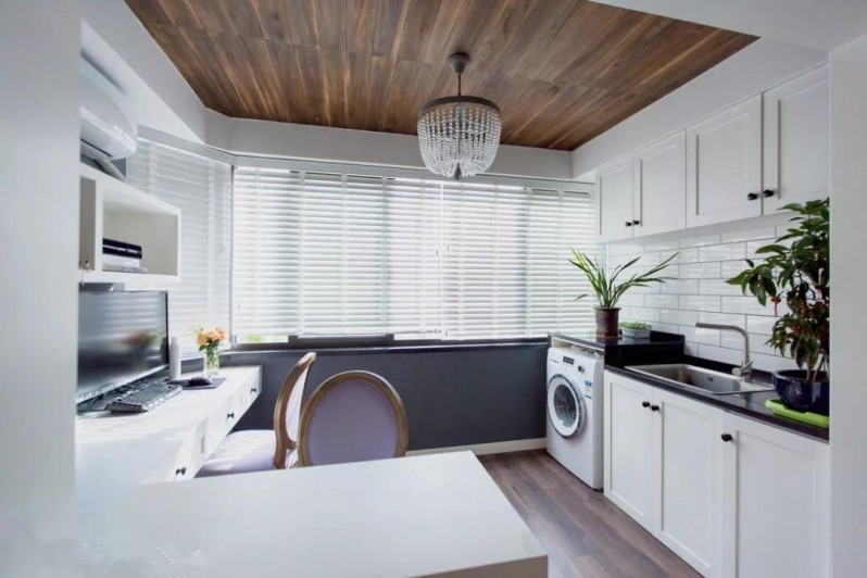 有時衛生間面積不大,放了洗衣機就沒什么空間了,那就把它塞進廚房吧。廚房有上下水,水路的改造方面不會太麻煩而且國外非常流行這樣的方法。