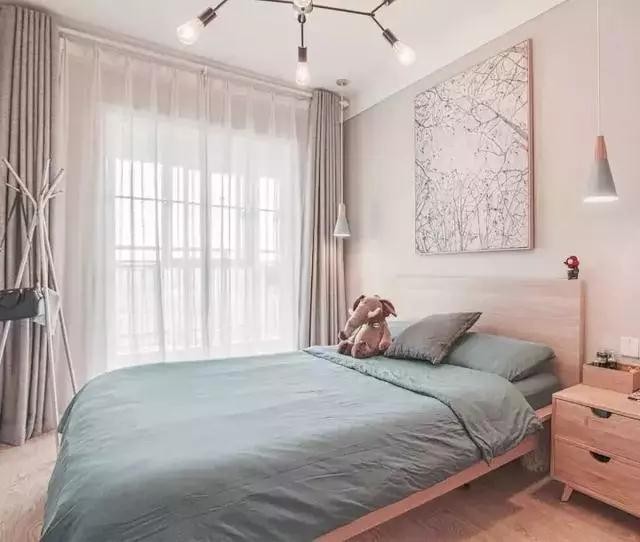 首先來講講臥室的窗簾吧,臥室最重要的肯定是隱私性和一個比較舒適一些的睡眠環境,所以遮光簾是必不可以少的,在內部加一層紗簾,就能夠有兩種不同的感覺。