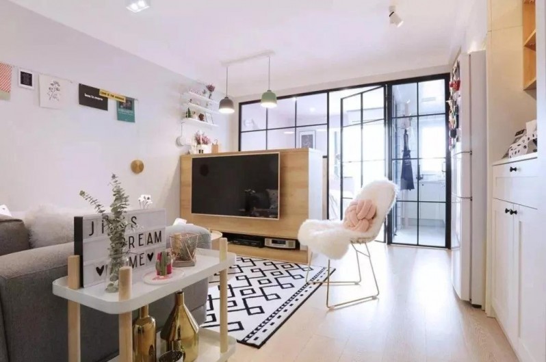 今天這套房子建筑面積47平,使用面積35平, 屋主選擇了清爽舒適的北歐裝修。