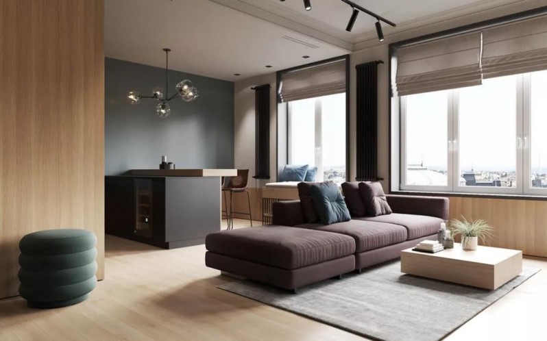 這是一個66平方米的小戶型,雖然是簡約現代風格,但卻選擇了比較深的色調,適用于對室內設計有較高要求的年輕人。