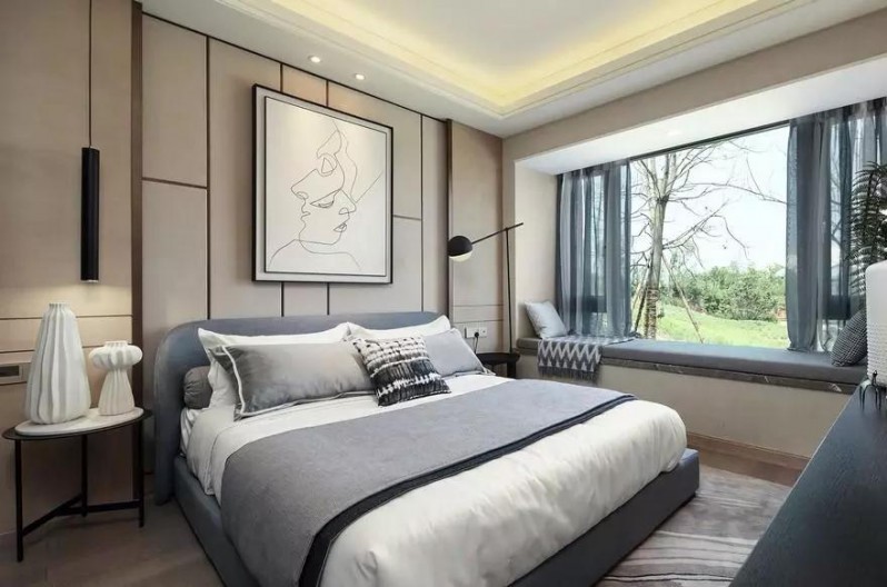 主臥室呈現(xiàn)出一種舒適耐看的氛圍,窗臺的空間也充分利用,做成可臥可坐的休閑區(qū)域。