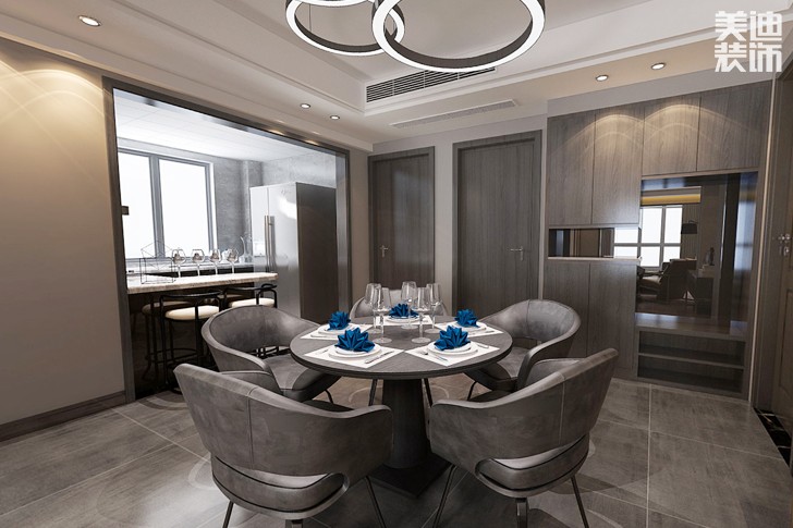 兩居及以上戶型即可以擁有獨立餐廳。和隨意找個地方坐著吃飯相比,在餐桌上用餐更突出一種生活的儀式感。獨立餐廳設計,你需要注意: