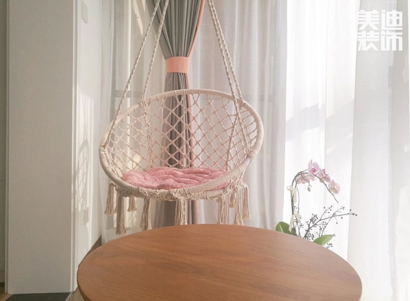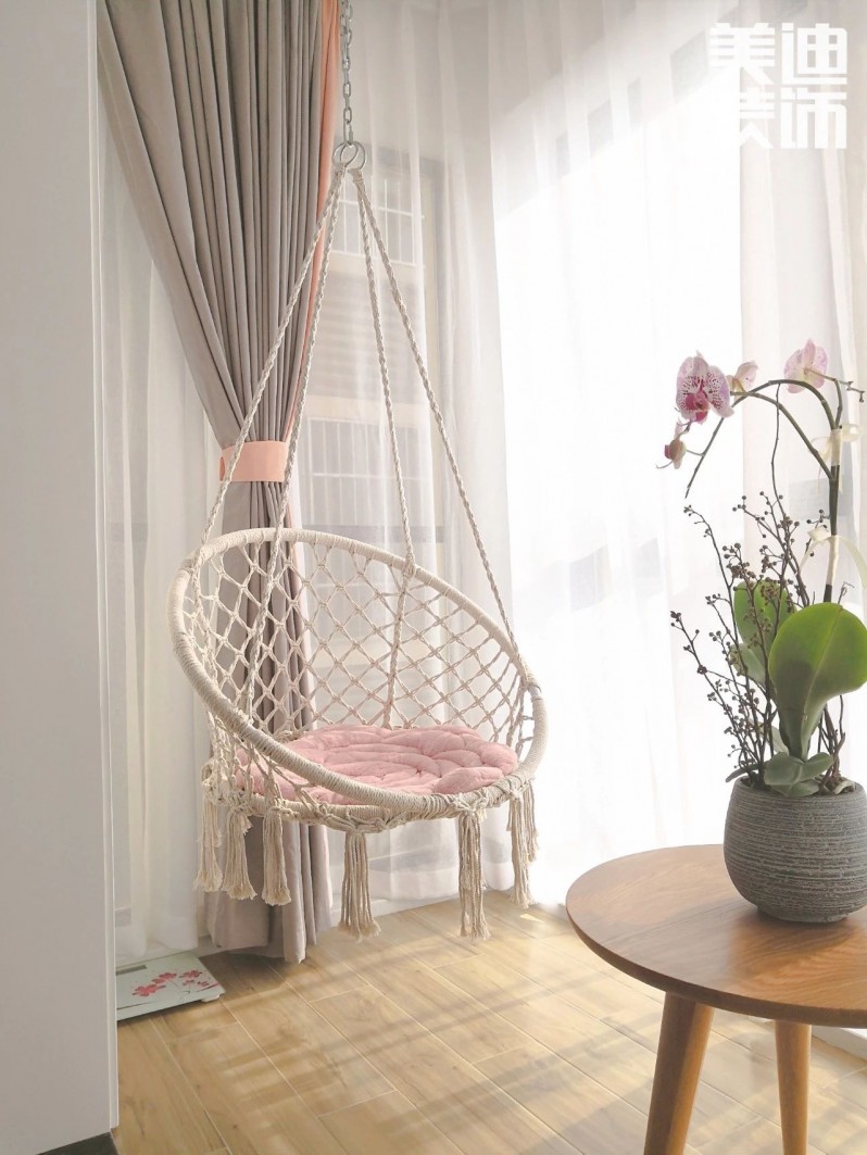 北歐ins風的吊椅,文藝氣十足,讓人一見鐘情的節奏!在吊椅里加上軟綿綿的坐墊跟靠枕,剛好讓身子窩在里面,凹出最舒適的姿勢。
