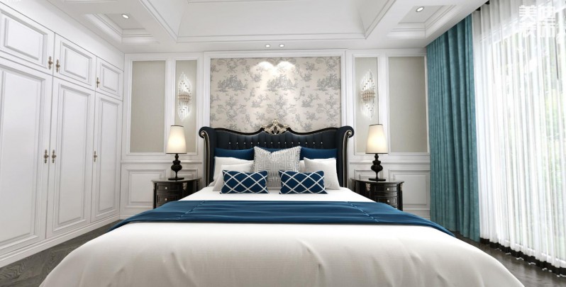 在色彩運用上,李安設計師特意選擇了簡單干凈的白色作為主調,同時霧霾藍與暖黃色進行局部點綴,加入了現代最火的ins火焰鳥元素,這樣的搭配使整體空間氣質瞬間提升。