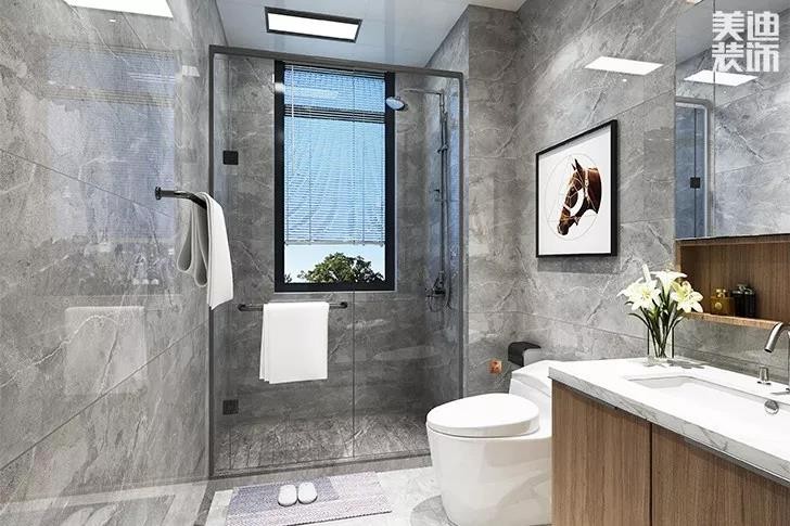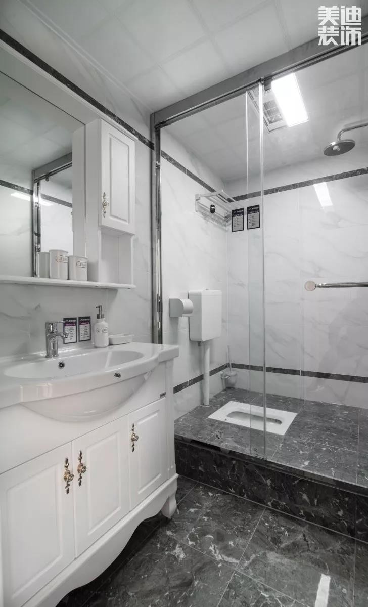 浴室雖說面積不是太大,但干濕分離一定要做。我們可以考慮借助浴簾亦或者淋雨門來達到我們干濕分離的效果,這樣也不會太過占據浴室的空間。