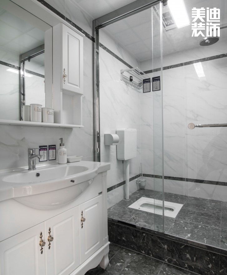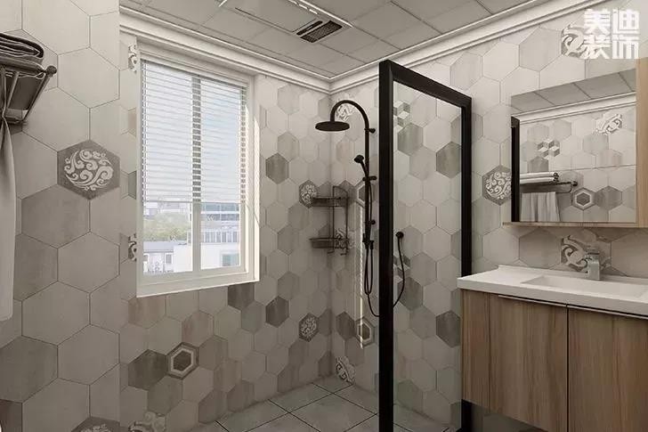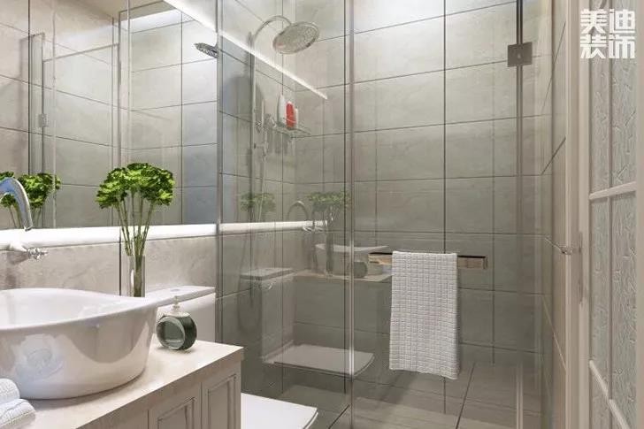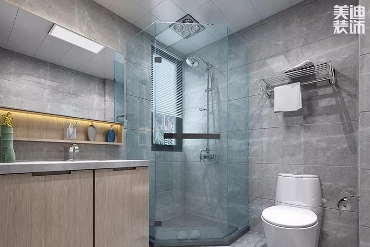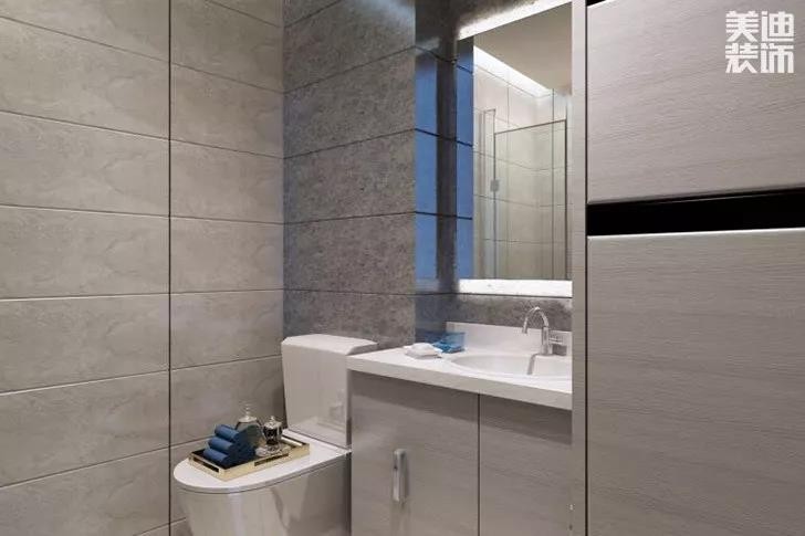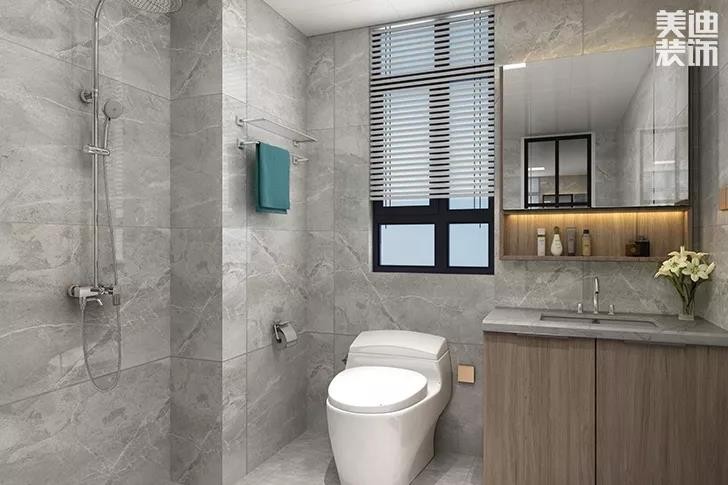 除了客廳、餐廳等公共區域,衛生間貼灰色瓷磚,同樣是非常的好看。
