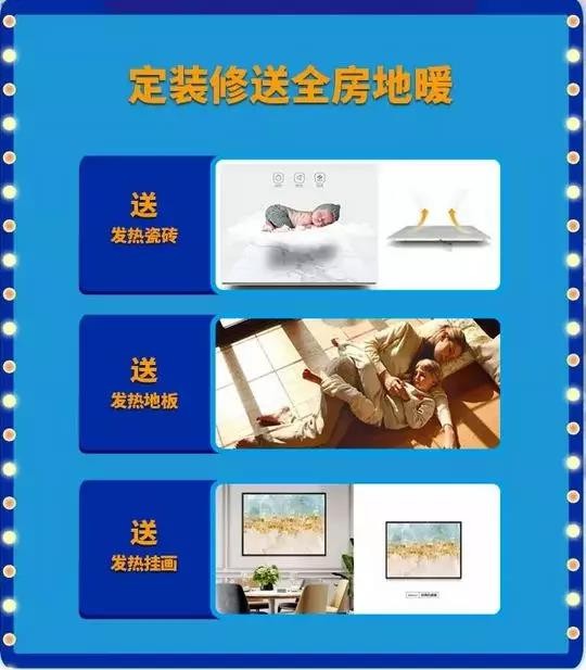 現(xiàn)在定裝修就送全房地暖:中央空調(diào)、地暖鍋爐、發(fā)熱瓷磚、發(fā)熱地板、取暖掛畫,讓您和家人過一個(gè)溫暖的冬天。