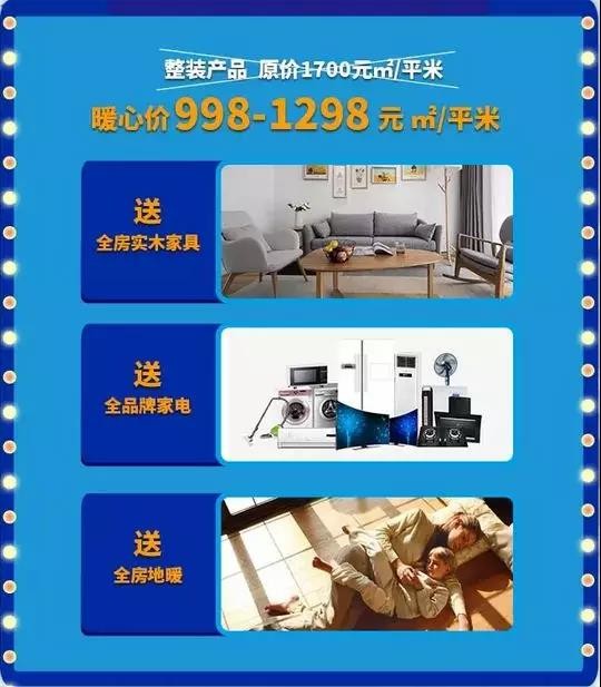 包人工、進(jìn)口基材、大牌主材,送全房實(shí)木家具、品牌家電、燈具,原價(jià)1700元/㎡,活動(dòng)價(jià)僅需998-1298元/㎡,拎包就能入住新家。再送全房暖氣,每戶最高可省8萬元,全年度優(yōu)惠力度最大!