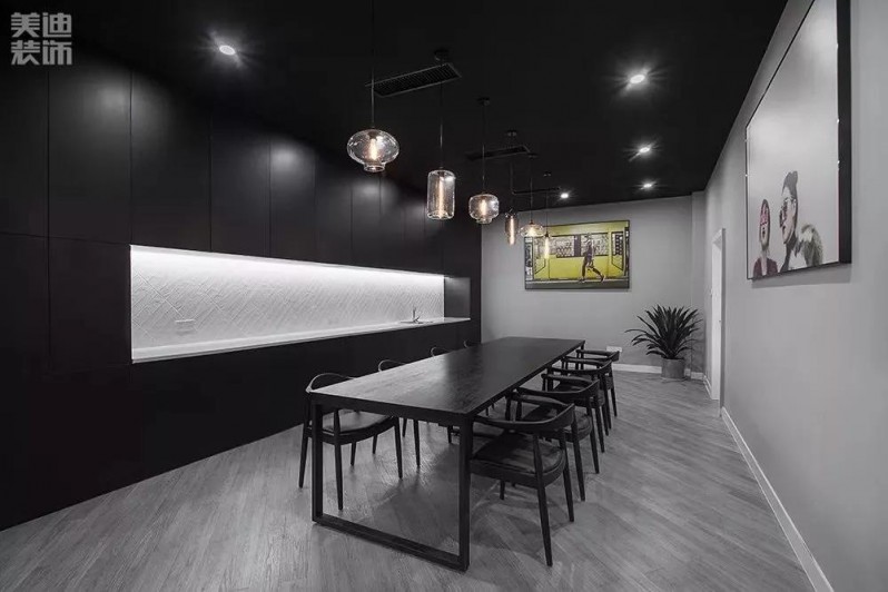 大面積的黑白灰整個空間線條簡潔,清晰,卻層次豐富,饒有趣味,展廳的藝術(shù)墻起到了隔斷作用同時展現(xiàn)了公司的企業(yè)文化,凸顯年輕時尚氣息。