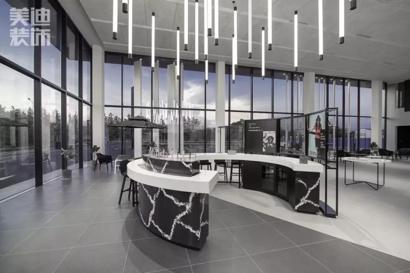 吧臺設(shè)計別具匠心,大理石吧臺高檔又愜意,能夠拉近與客戶的距離感,打造了一個輕松愉快的購車體驗環(huán)境。