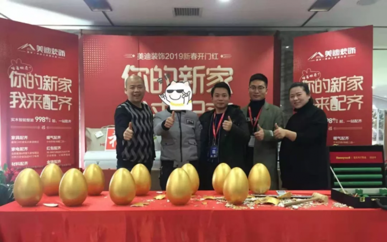 終于知道為什么每位業主都喜歡砸金蛋了,一是,里面有美迪裝飾為業主們精心準備的大獎。二是,當音樂響起,業主們走進砸金蛋區域,拿起金錘,duang ~仿佛完成了一場關于幸運的儀式。
