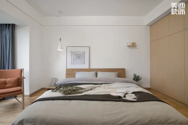 設計周軍華這組設計怎么看都是滿屏的春天感。原木色系的木具家裝,遇上淺灰色系,在加上一點點色和綠色的點綴,像是初春萌芽的松動~