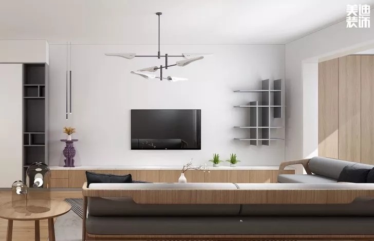 選擇吊柜或矮柜來裝飾電視墻面,為空間凸顯更多層次,讓所有的零碎雜物統統收納于無形之中,也可以帶來意想不到的美感。