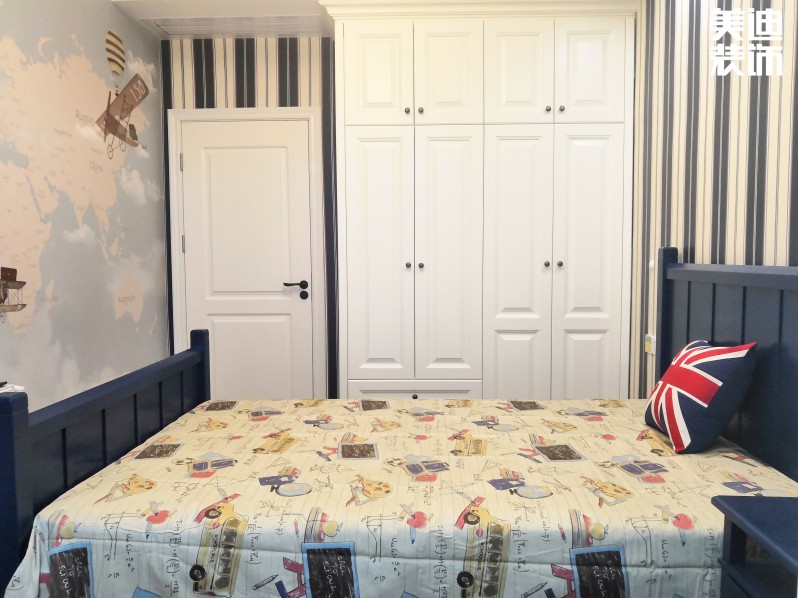 小崽的房間藍(lán)藍(lán)的海風(fēng)氣息,條紋的壁紙我當(dāng)時(shí)是拒絕的,但是老公比較懂小崽一點(diǎn),布置完以后小崽果然很喜歡。