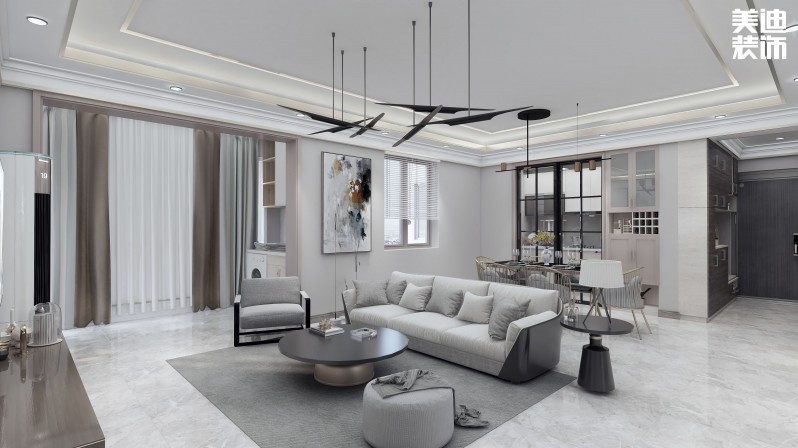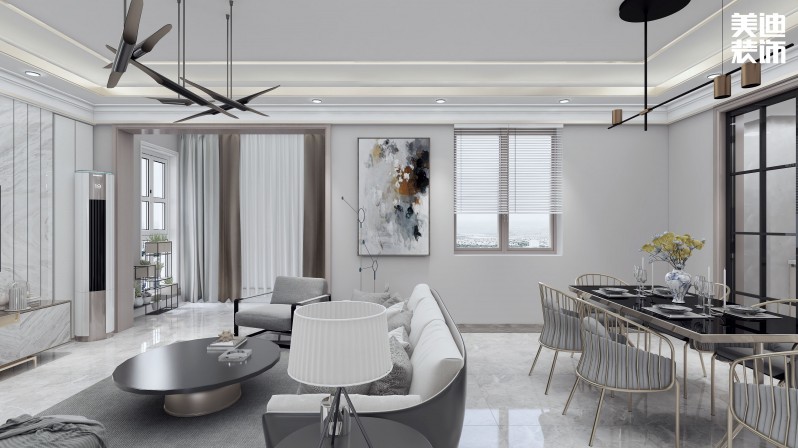 陳錦設計師的這套案例作品有很多特點,張弛有道,低調卻不空虛,自由卻不放縱,精致卻不盲目,這樣的輕奢式生活態(tài)度無疑是愜意的。全屋采用了大面積的灰白,外加金屬和木質家具,整體風格簡約大氣。