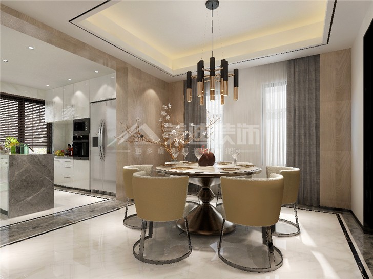 1)、在餐廳中可以裝個(gè)吊扇,讓炎熱的夏天變得清涼。