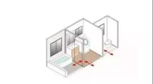 或是如下圖的布局,洗手間作為浴室和衛生間的過渡,能夠從兩個方向進入。
