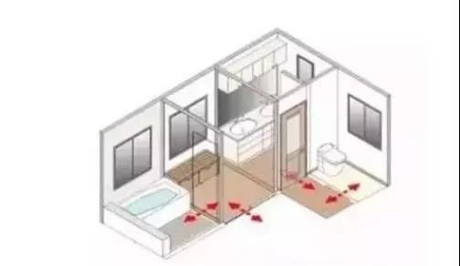 這種做法比較類似國內最近開始流行的干濕分區的做法。占用空間并不大,但是能夠比較有效的阻止水蒸氣災害。