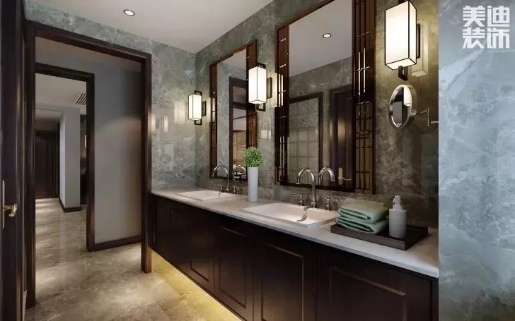 選擇主燈+輔燈的方法增加采光,還能夠讓衛生間增加溫馨的感覺,減少冷艷感。