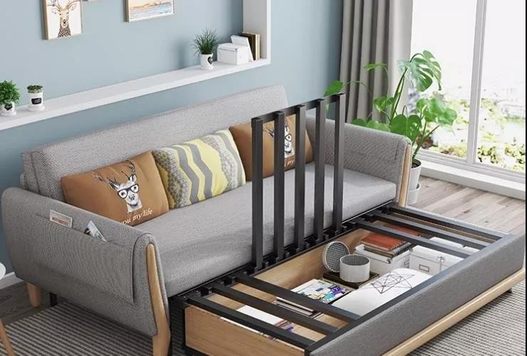 平時就是一個好看的布藝沙發,甚至比普通沙發功能更多。拉開來就是一張完美的床,展開以后足夠一人睡了,而且還配有大量的儲物箱,一些不必要的雜物統統可以放進去。