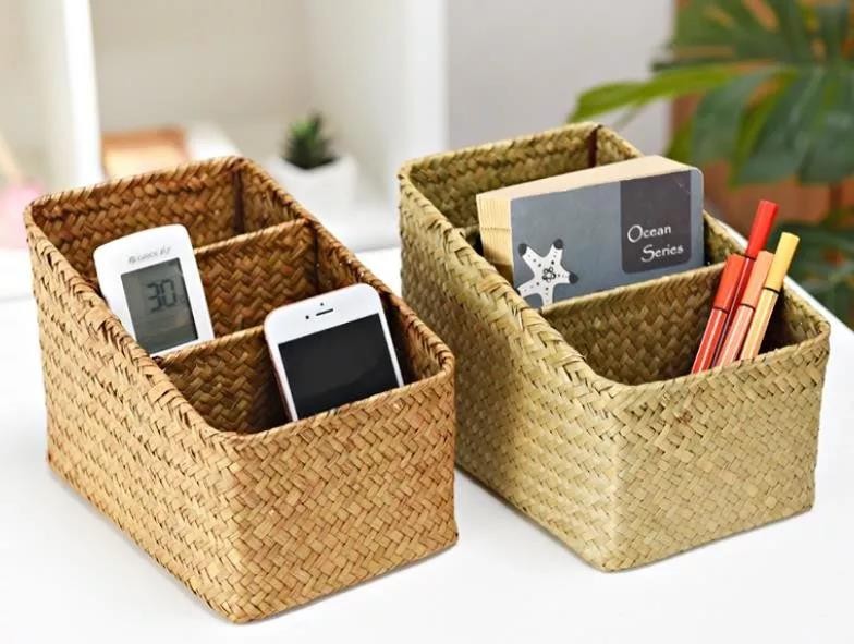 采用天然海草編織,純手工制作,不僅可以充當收納工具,也可以當做觀賞藝術品。利用它把客廳桌面收的干干凈凈的,看著心情都會好一些~