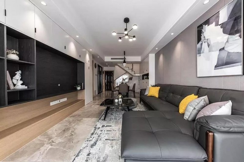 你還可以根據自己的需求靈活選擇,封閉式或開放式的柜門,避免視覺雜亂,或者干脆將電視隱藏起來,需要的時候打開移門,就能為整個客廳顏值加分不少哦~