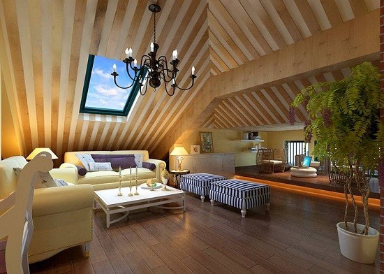 在裝扮時,為了減輕夾層的受力,建議地表層不要鋪磚塊,因其會加重夾層的重量,可選用復合或實木地板,另外對于閣樓的地面裝修,還應考慮到靜音問題,所以最好選用隔音效果好的地面材料。