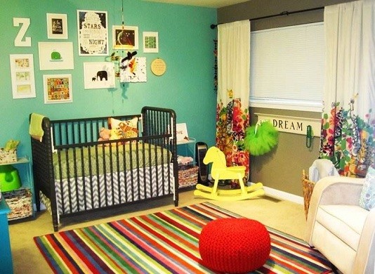 小寶寶可以摸爬滾打;大孩子可以充分玩耍,還能邀請他(她)的小客人來做過家家的游戲。讓您的孩子自由暢快地玩耍吧,這是開發兒童智力至關重要的一點!嬰兒房裝飾材料-嬰兒房裝飾要環保涂鴉墻或小黑板相信您的孩子一定喜歡涂涂畫畫,那就不要忘記選擇房間的一面墻作為他(她)的涂鴉墻,買一塊小黑板也是好主意!讓孩子隨意揮動手中的筆吧,畫出他們眼中的美好事物!