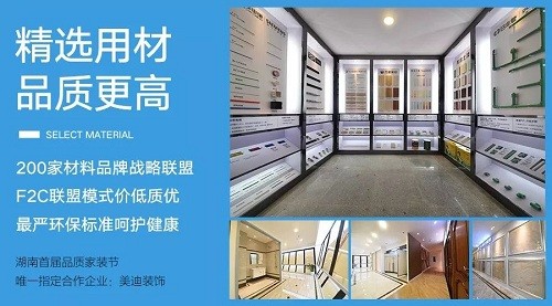 美迪裝飾精選用材,遵循從“全球挑選一線大牌,又從大牌中挑選明星暢銷款產品”的原則,做到品牌品質“雙保險”。與全球200余家知名材料品牌達成戰略聯盟,采用F2C模式,減少中間環節,讓利于消費者,保證產品的高品質和低價格。
