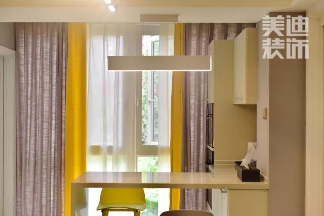 這個空間設計是業(yè)主要求的存在,設計師便打造了一個客廳、餐廳、吧臺三位一體的空間,吧臺旁邊是柜子跟微波爐,在適當休閑中,一點紅酒配上加熱的食物,浪漫的感受生活中的小情調(diào)。