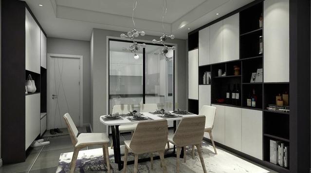 性冷淡風(fēng)格的餐廳裝飾,在搭配上既簡單的餐桌椅,高冷范兒立顯出來。餐邊柜的設(shè)計,融入酒柜的元素,可以放置一些紅酒,也可以放置一些小擺件。