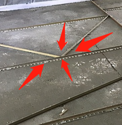 瓷磚縫的清理:金屬條本身是有差不多1cm厚度,為了鋪完的平整度,瓷磚縫隙的處理一定要做好,清理干凈才能使得各個功能區是在于同一個平面。