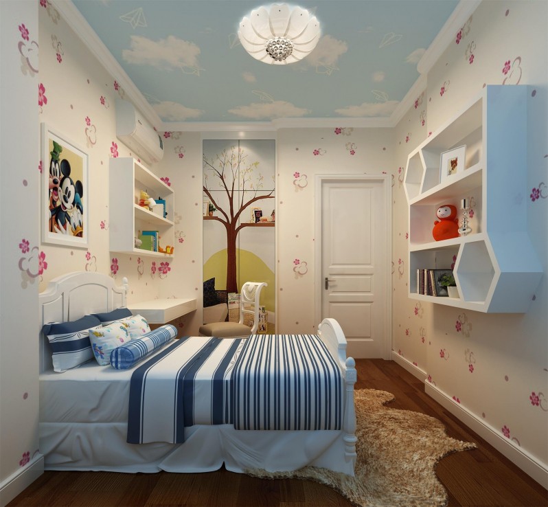 兒童房的光線也是不容小覷的,房間最好要是向陽的,采光要很好。天氣晴朗的時候,能讓孩子在屋子里就感受到陽光的溫暖。頂燈要明亮,有助于孩子視力的保護,書桌的燈光要柔和,均勻,使房間更加溫暖,讓孩子更加安全。
