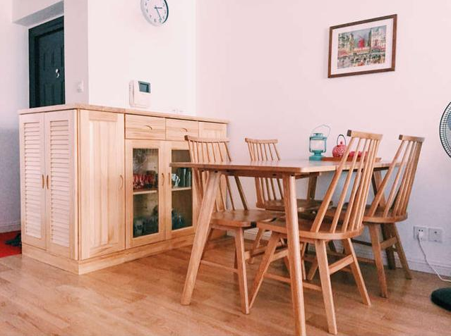 小尺寸的餐邊柜,放在墻邊剛剛好。并且電飯煲也可以放在臺面上。