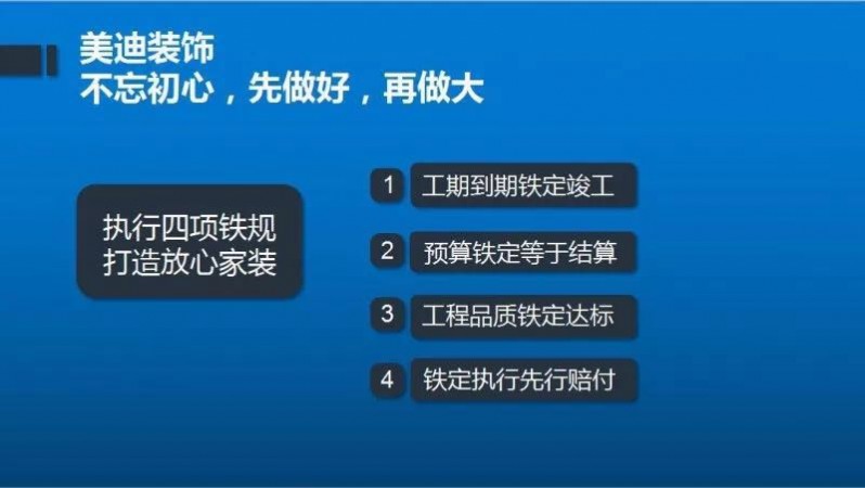 水電維系著整個家庭日常生活的運轉。水電沒裝好,輕則電路短路、跳匝,重則水管爆裂拆了要重新裝。如果您完全沒時間全程監控裝修質量和進度,那選擇一個嚴格保證質量與施工品質的公司至關重要。美迪裝飾,放心家裝,四項鐵規(期到期鐵定竣工、預算鐵定等于結算、工程品質鐵定達標、鐵定執行先行賠付),我們一直都在做放心家裝這件事,把消費者對家裝的‘擔心’變成‘放心’。