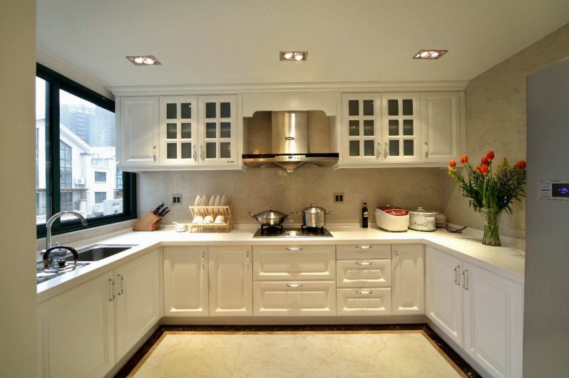 廚房中的光線也是很重要的,如果是單一的照明,光線就會顯得很暗,特別是中餐是很注重“色”的,因此廚房中的光線一定要足夠明亮、充足,光線的顏色盡量選擇白色,這樣除了對廚房的照明之外,在洗滌區、操作臺的位置,可以增設櫥柜專用的射燈,做好補充照明的作用,以方便在做飯的時候有充足的光源。