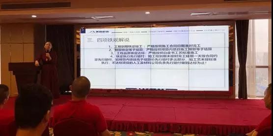 在大會上,我們的運營中心總經(jīng)理兼總店店長高澗暉也特別強調(diào)道:“將 ‘放心家裝,四項鐵規(guī)’嚴格執(zhí)行到位,讓工地說話?!?/span>