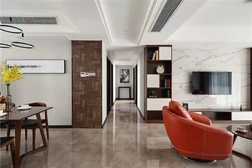 進入這個家,你的注意力一定會被這抹亮眼的成色所吸引!客廳裝修時業主特意選擇了亮眼的橘色的沙發和座椅,搭配得極其好看。和大理石元素的巧妙融合,讓整個家充滿了濃郁的現代氣息,分分鐘提高了家居檔次!