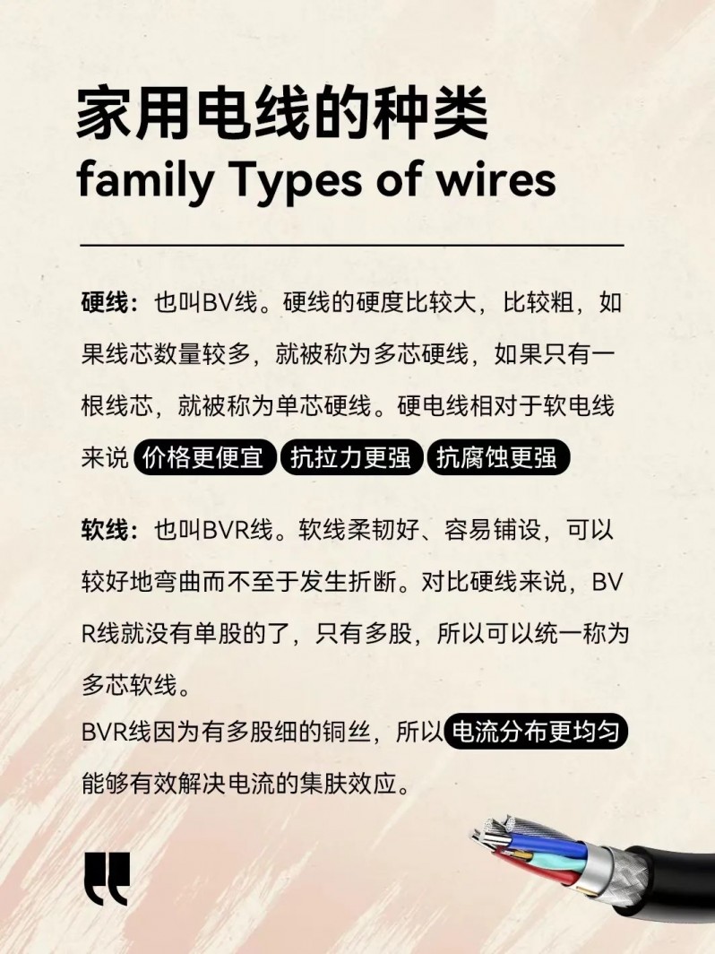 電線雖小,責任重大。隱藏在墻里的電線絕對是牽一發而動全身的“主動脈”,與家庭安全息息相關。所以,學會選購電線,是家庭安全的前提。