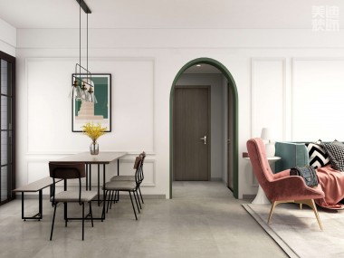 時代港灣89㎡復古風格案例效果圖-餐廳