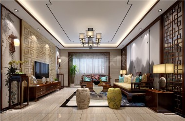 萬境水岸125平新中式風裝修案例圖—客 ...