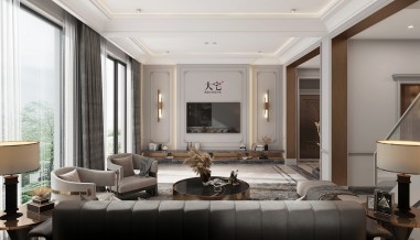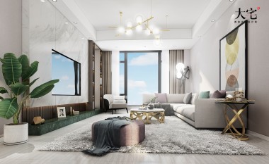 明發國際85㎡輕奢風格案例效果圖—客廳