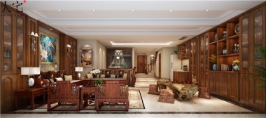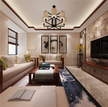 香樟鑫都120平中式裝修案例效果圖-客廳