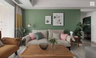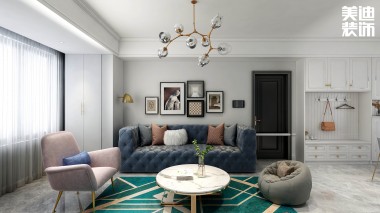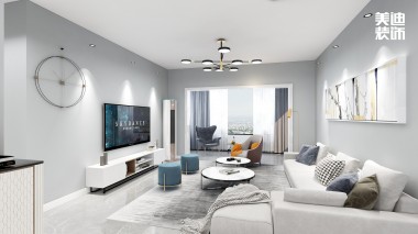 江山帝景95㎡北歐風格案例效果圖—客廳