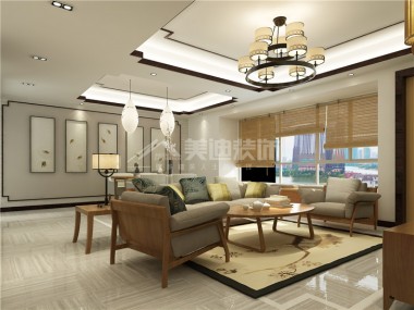 保利國(guó)際新中式風(fēng)裝修案例圖—客廳