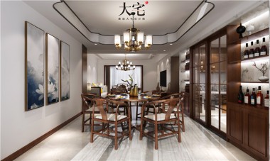 江山一號(hào)220平新中式風(fēng)裝修案例圖—餐 ...