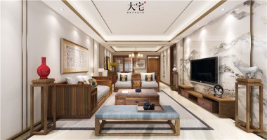 江山一號(hào)220平新中式風(fēng)裝修案例圖—客 ...