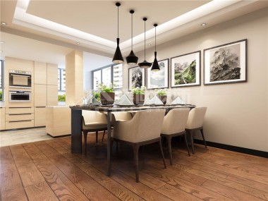 湘翰御舍88㎡日式風(fēng)格案例效果圖—餐廳