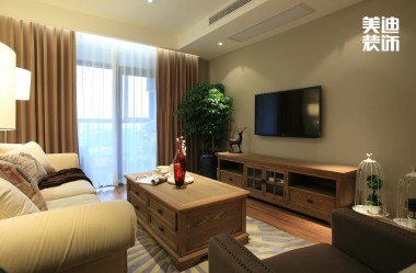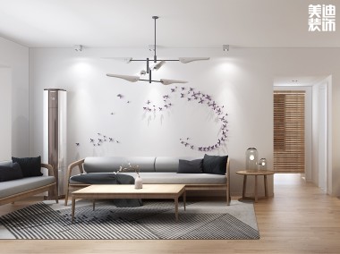 湘翰御舍88㎡日式風(fēng)格案例效果圖—客廳