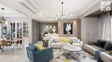 通用時(shí)代168平簡(jiǎn)歐風(fēng)裝修案例圖—客廳